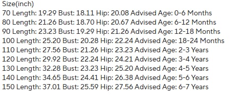 Sizes: 0-6M, 6-12M, 12-18M, 18-24M, 2-3T, 3-4T,4-5T, 5-6, 6-7