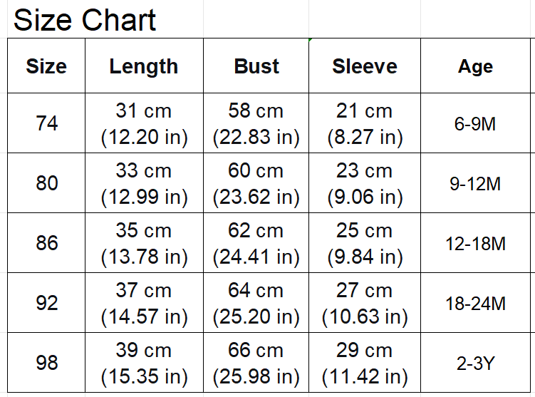 Sizes: 6-9M, 9-12M, 12-18M, 18-24M, 2-3T