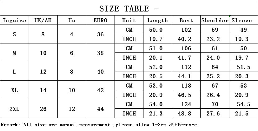 Sizes: S, M, L, XL, 2XL
