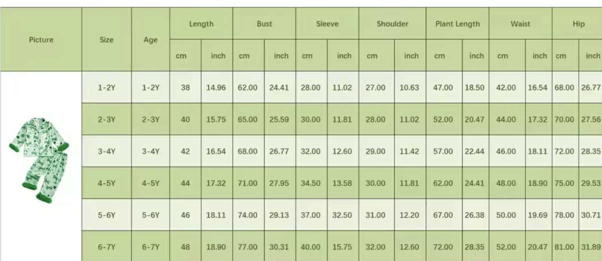 Sizes: 1-2Y, 2-3Y, 3-4Y, 4-5Y, 5-6Y,6-7Y