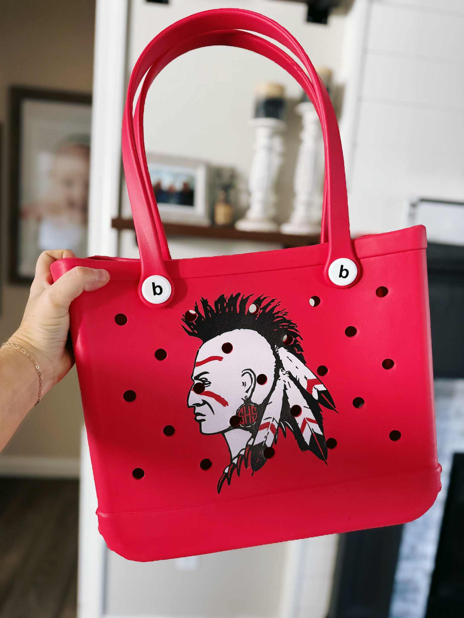 Make a statement by the pool or at the beach with this eye-catching CUSTOM LOGO tote on both sides: