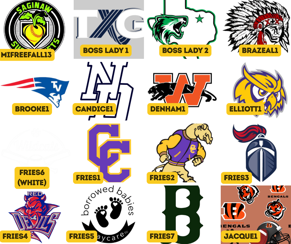 (wrapped designs are still available under best sellers on website cannot add logo) these are set designs: softball, baseball, football, cow, leopard, basketball, checker, volleyball.