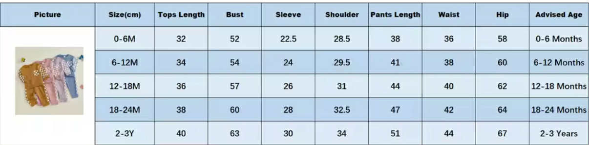 Sizes: 0/6m, 6/12m, 12/18m, 18/24m, 2-3T