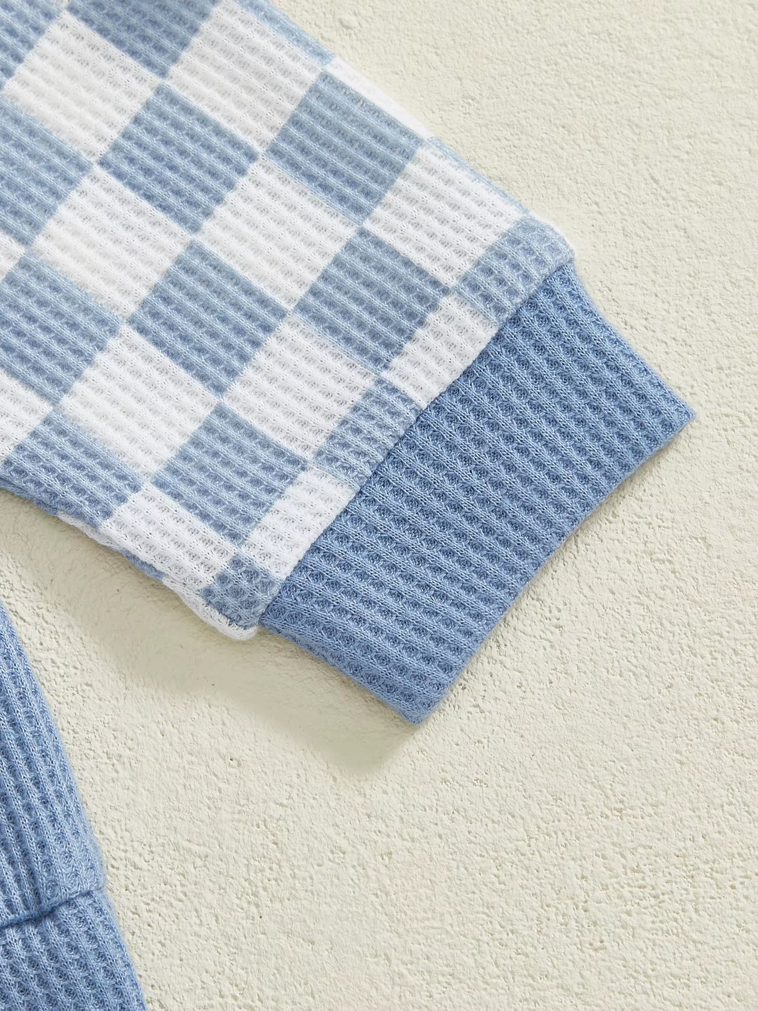 Your little one will be ready for anything in this fun two-piece set! Soft and snuggly, it features long sleeves and a handy pocket—perfect for stashing treasures. A playful checkered design runs on both items, while the classic crew neck keeps things comfy and casual. Mix, match, and play all day long!